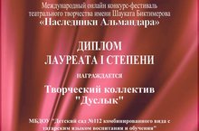 "Дуслык" иҗат төркеме Шәүкәт Биктимиров исемендәге "Әлмәндәр варислары" дип исемләнгән халыкара онлайн театр иҗаты бәйгесе-фестивалендә катнашып, 1 нче дәрәҗәдәге лауреат дипломына лаек булды. Әлеге бәйгедә балалар "Кунакчыллык" театр күренешен тәкъдим иттеләр. Балаларны һәм аларны әлеге бәйгегә әзерләгән педагогларны җиңүләре белән котлыйбыз!