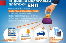 "Единый налоговый платеж"- это дополнительный способ уплаты налогов. Использование его функций значительно сокращает время на оформление платёжных документов и минимизирует ошибки при заполнении нескольких видов платежных поручений, гарантирует уплату налогов без нарушения срока. Перечислить единый налоговый платеж можно через «Личный кабинет налогоплательщика для физических лиц» , а также с помощью сервисов официального сайта ФНС России: «Уплата налогов, страховых взносов физических лиц», «Уплата налогов за третьих лиц», «Заполнение платежного поручения».