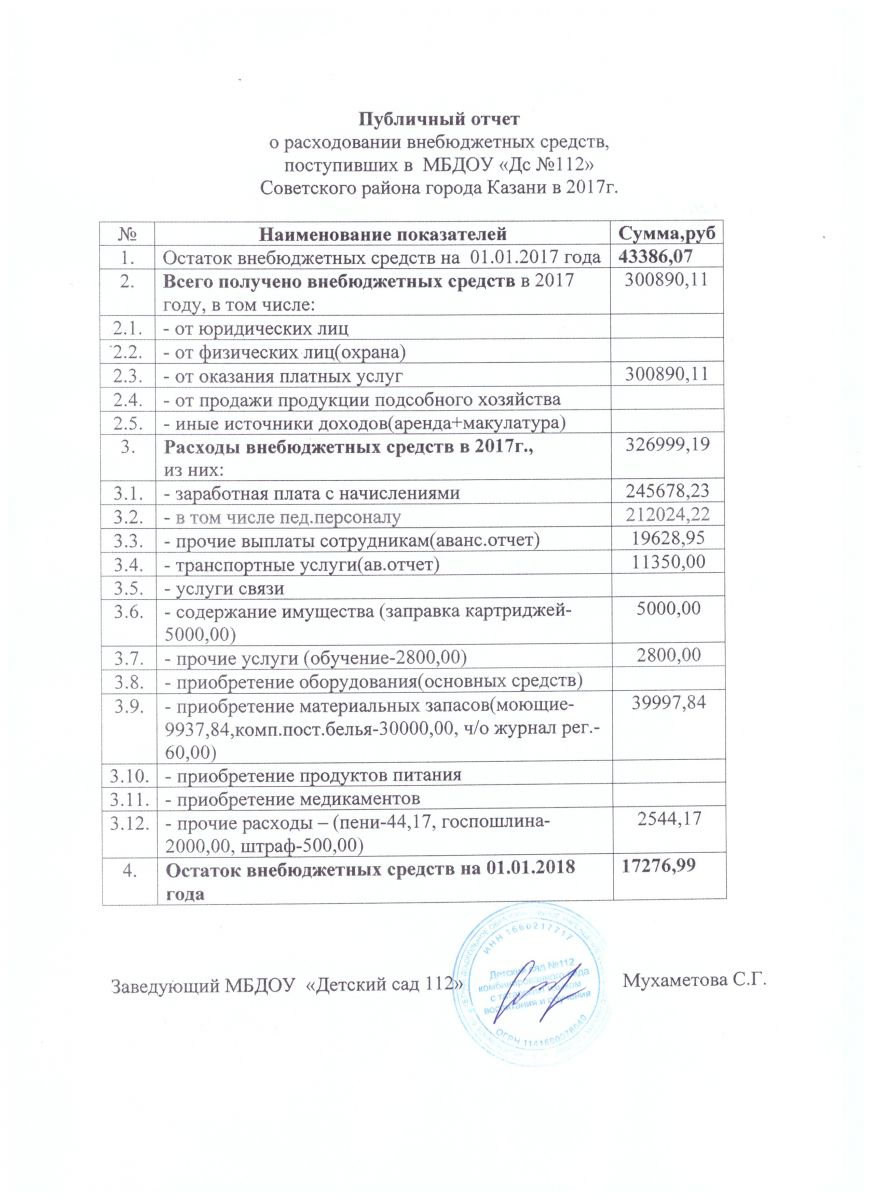 Отчет о привличении и расходовании внебюджетных средств в 2017 г.