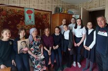 Бүген 5а сыйныф укучылары тыл һәм хезмәт ветераны Миннибаева Җәмилә Фәхретдин кызын Бөек Җиңүнең 77 еллыгы белән котлады. Җәмилә апа чыгышы белән Актаныш ягыннан. 16 яшендә Казанга килгән һәм Казан оптика-механика заводында эшләгән. Сугыш вакытында һәм сыгыштан соңгы елларда тырышлыгы белән башкаларга үрнәк булган. Фидакарь хезмәте өчен төрле дәрәҗәдәге орден һәм медальләр белән бүләкләнгән. Җәмилә апа иптәше белән ике ул тәрбияләп үстергәннәр. Кызганыч, ире һәм бер улы инде вафат. Бүген безне икенче улы Рифкать абый каршы алды. Ул Җәмилә апаның хезмәт юлы турында укучыларга сөйләде һәм әнисенең яшь вакытта төшкән фотоларын күрсәтте. Җәмилә апа укучы кызларны күргәч, бик шатланды, аларга укуларында уңышлар теләде, тыныч һәм имин еллар булсын дип кат-кат кабатлады. Бүгенге очрашу укучылар күңелендә озак сакланып калыр дип уйлыйм.