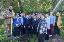 4В сыйныф укучылары, «Шәһәр яны урманчылыгы» хезмәткәре Исламов Айдар Римович белән берлектә, мәктәпнең яшелчә бакчасында яшь алмагачлар утырттылар. Айдар Римович укучыларга агач утырту һәм агач үсеп китсен өчен ничек тәрбияләргә кирәклеген аңлатты.