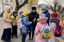 Юные инспектора дорожного движения нашей гимназии вместе со старшими инспекторами отделения пропаганды БДД ОГИБДД Управления МВД России по г. Казани провели рейд, где делали замечания пешеходам с детьми, объясняли правила дородного движения и вручили подарки - светоотражающие ленты и буклет.