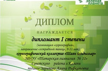 На прошедшем в декабре V городском экологическом фестивале детских и юношеских творческих коллективов "Зеленая планета" хореографический коллектив нашей гимназии "Шаян йолдызлар" стал дипломантом I степени! Поздравляем коллектив и его руководителя Зарипову Алину Рифкатовну!