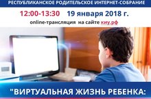 19.01.2018 с 12.00 до 13.30 состоится Республиканское родительское интернет-собрание «Виртуальная жизнь ребенка: интернет – друг или враг?».