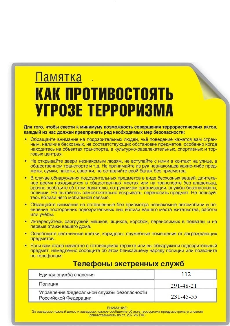 План мероприятий по организации антитеррористической безопасности 2020-2021