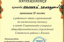 Гимназия укучылары ел дәвамында Спартакиада уеннарында актив катнашалар. Әле яңа гына өстәл теннисы уенында катнашып, II нче урын, шахматтан - III нче урын, футболдан - III нче урыннарны яулап кайттылар. Афәрин! Котлыйбыз сезне, укучылар! Алга таба да призлы урыннар лаек булсын сезгә.
