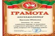 Гимназия укучысы Киселева Татьяна район күләмендә 2008-2011 елгы укучылар арасында узган шахмат турнирында III урын яулап кайтты.