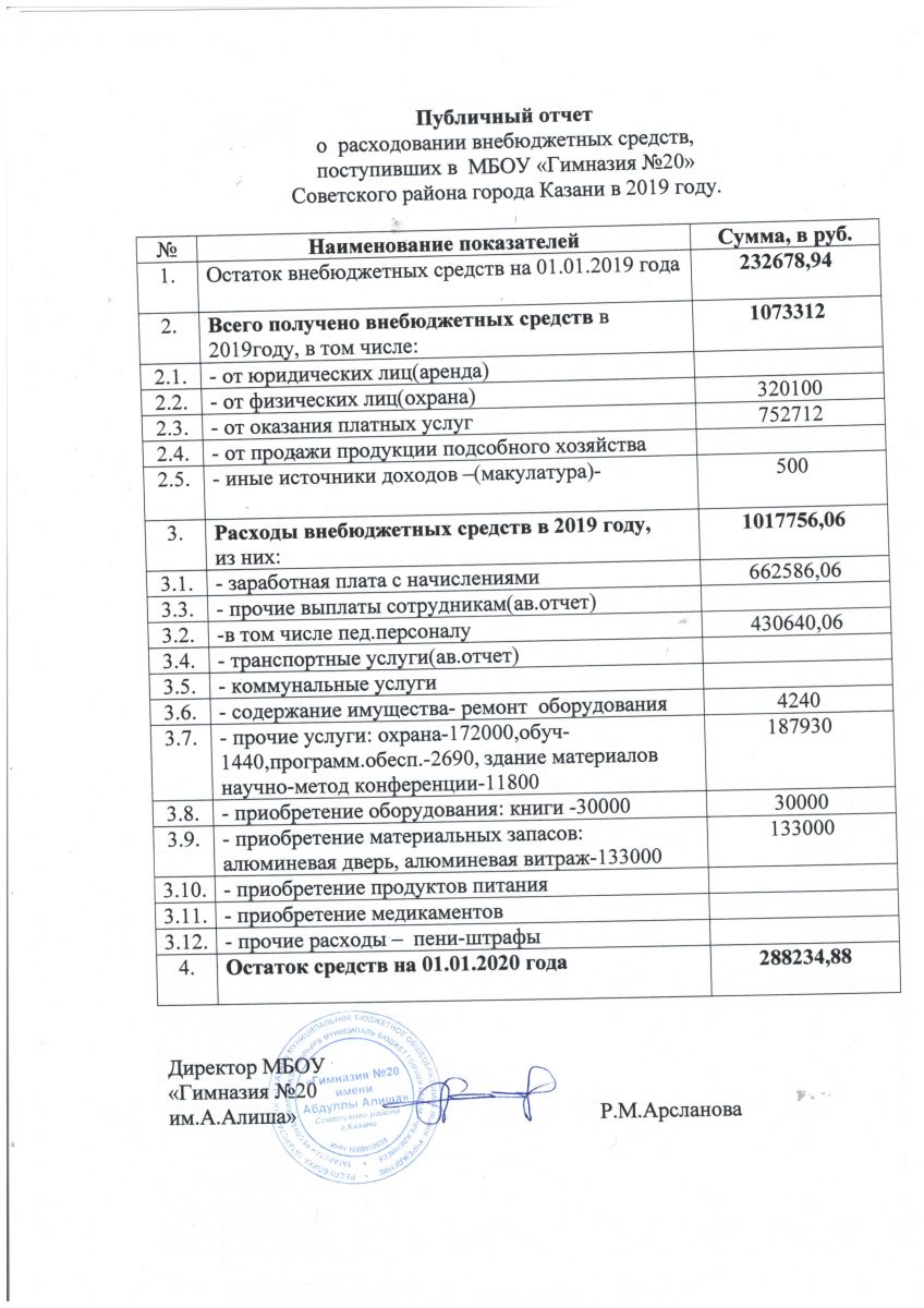 Отчет о привлечении и расходовании внебюджетных средств за 2019 год
