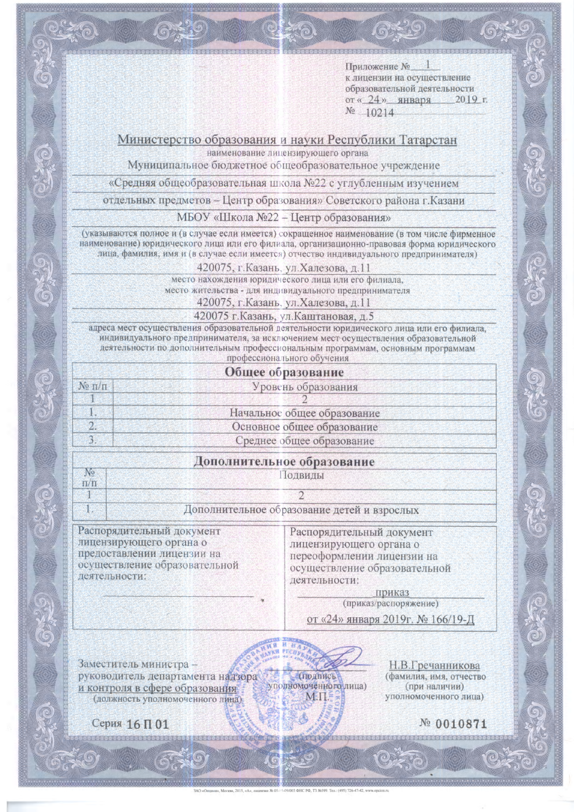 приложение к лицензии