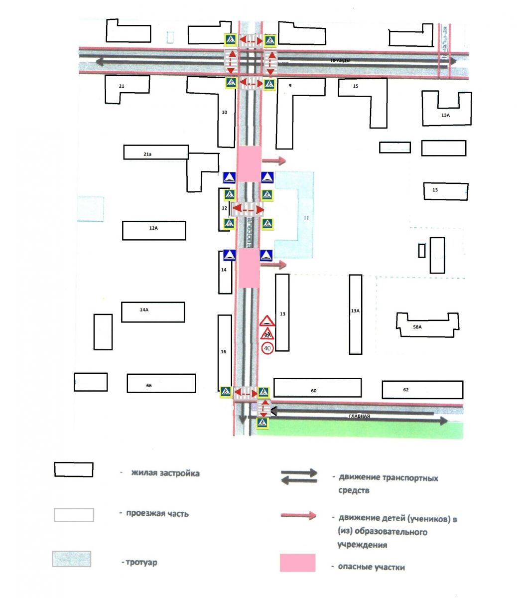 Типовая схема безопасного маршрута "Дом - Школа - Дом":