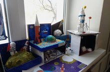 12 апреля 2022 года среди учащихся начальной школы прошёл конкурс поделок, посвященный Дню космонавтики. Ребята приняли самое активное участие в этом конкурсе. Было представлено огромное количество работ, выполненных в разных техниках. На 1 этаже была организована выставка поделок, чтобы все учащиеся школы имели возможность увидеть их. Хотя все без исключения работы были достойны наград, были подведены итоги конкурса и определились победители: