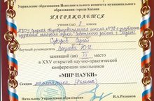 Поздравляем Суворова Сергея с III местом на XXV открытой научно-практической конференции "Мир науки" (8 класс, секция - математика, научный руководитель - Вазиева Ю.И.).