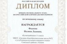 18-21 февраля 2020 года состоялся региональный этап всероссийской олимпиады школьников по немецкому языку. От нашей школы выступили на олимпиаде 8 учащихся. Муллагалиев Дениз (7Б класс), Фадеева Полина (11А класс) и Ануфриева Ирина (11А класс) стали призёрами (учителя Цыганова Л.Ф. и Халимбаева Э.Г.). Мы поздравляем ребят с этим успехом и желаем победы на заключительном этапе олимпиады!