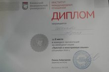Поздравляем Шаихову Аделю, ученицу 10 класса, занявшую 2 место в конкурсе презентаций на немецком языке «Толстой и иностранные языки». Конкурс проводился Институтом международных отношений Казанского федерального университета. Учитель Новикова Ксения Андреевна.
