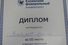 Поздравляем Закирова Арсена, ученика 9Б класса, который занял III место в конкурсе презентаций на немецком языке «Лобачевский и иностранные языки», посвящённых деятельности Н.И.Лобачевского в Казанском университете. Научный руководитель – Новикова Ксения Андреевна, учитель немецкого языка. Поздравляем и желаем дальнейших творческих успехов!