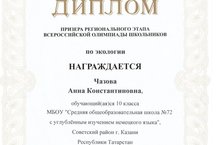 4-6 февраля 2016 года в Казани состоялся региональный этап всероссийской олимпиады школьников по экологии. Нашу школу на данной олимпиаде представляли два ученика, которые оба стали призёрами. Поздравляем Хайруллина Искандера, ученика 9А класса, и Чазову Анну, ученицу 10А класса, ставших призёрами региональной олимпиады по экологии!!! Надеемся, что Анне выпадет возможность поучаствовать на заключительном этапе олимпиады. Желаем ребятам дальнейших успехов!