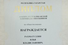 29 января 2014 г. прошел региональный этап всероссийской олимпиады по обществознанию. Рахматуллин Илья, ученик 8В класса, стал призером данной олимпиады. Поздравляем и желаем дальнейших успехов!