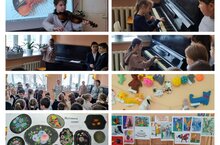 В начальной школе проходят музыкальные переменки, игры, конкурсы, викторины, организованы выставки рисунков и мастерских учащихся 5- 7 классов. -
