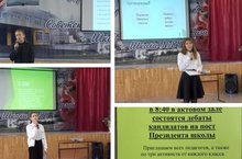 7 октября состоялись дебаты кандидатов в Президенты школы. В предвыборной гонке участвовали 3 кандидата: Гиззатуллина Аделина (11а класс), Буштак Дарья (10а класс), Ямбарцева Виолетта (9а класс). Кандидаты получили возможность выступить перед избирателями, рассказать о себе и своей программе, ответить на вопросы избирателей.