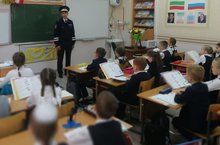В рамках Месячника Безопасности была проведена встреча с инспектором ГИБДД Садыковым А.Ф. В начальной школе беседа велась на тему «Правила безопасного поведения на дорогах»