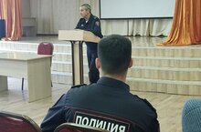 сегодня с учащимися 8-х классов прошла беседа с начальником полициии ОП № 15 " Танкодром" Боговиевым Р.З.