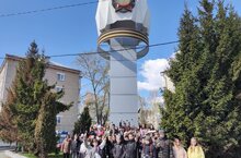 Митинг к 9 Мая у "Стеллы Победы", учащиеся 5-х кл возложили цветы