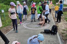В летнем лагере прошел праздник , посвященный дню защиты детей, в этот день дети пели песни и рисовали рисунки на асфальте
