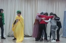 Учащиеся младших классов, состоящие в театре народной песни «Малинка», под руководством учителя музыки Елагиной Лилии Рафиковной, познакомили учащихся младшего звена с таким народным творчеством, как колядки.