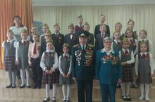 В этот день в школе принимали важных гостей: Бакаеву Веру Георгиевну - дитя войны, узницу концлагеря и Комлева Алексея Николаевича - специалиста по ремонту танков, который восстанавливал подбитую технику на опушках леса до самой Победы.