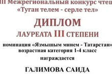 Учащиеся 4А класса гимназии Галимова Сайда и Шарифуллина Тансылу стали победителями конкурса учащихся "Туган телем-серле тел". От всей души поздравляем наших чтецов!