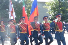 Перед военнослужащими и гостями праздника выступили начальник училища генерал-майор В. Майстренко и оркестр Казанского гарнизона.
