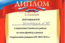 В рамках Спартакиады учащихся общеобразовательных учреждений г. Казани 2015-2016 учебного года команда МБОУ "Гимназия №90" участовала в соревнованиях по мини-футболу.