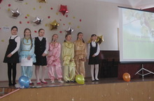 На переменах учителя английского языка проводили конкурсы для учеников начальной школы.