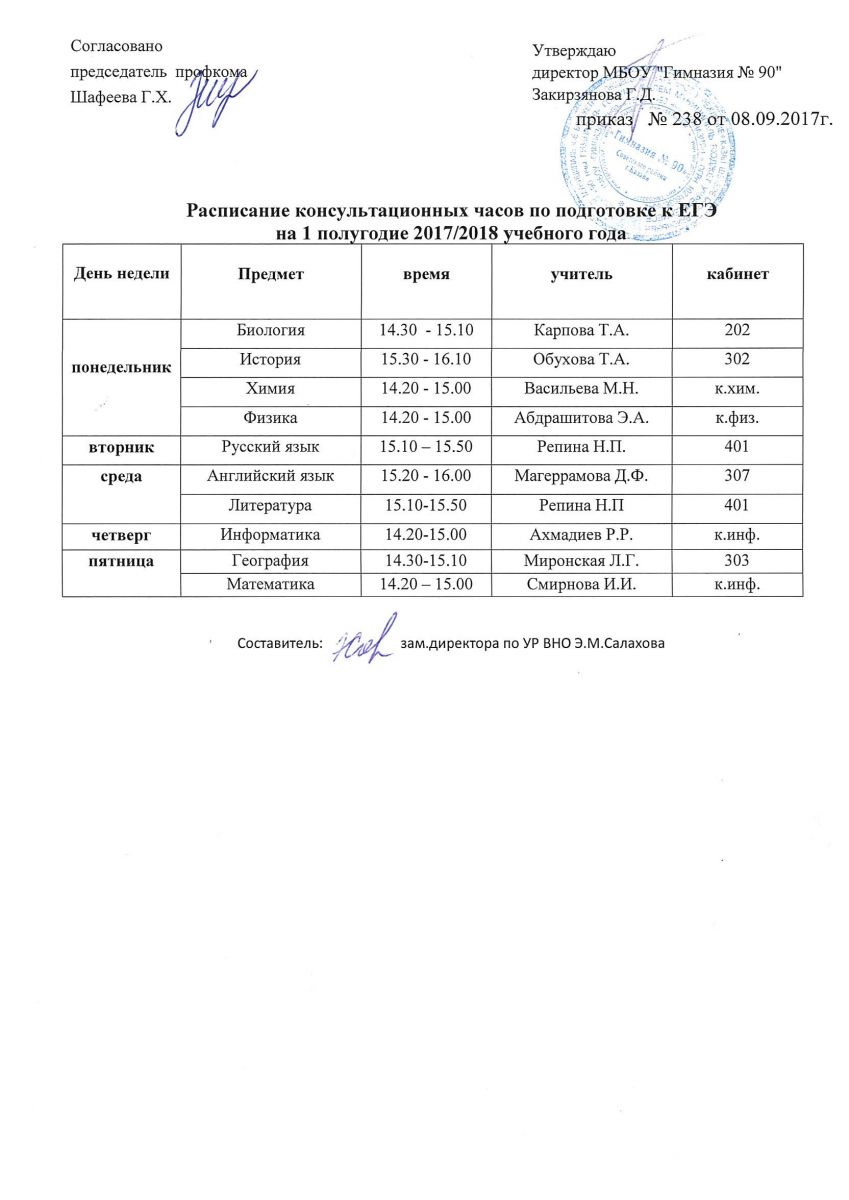Расписание консультационных часов по подготовке к ЕГЭ в 2017-2018 учебном году