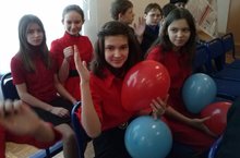 1. Цветная вечеринка собрала девочек в красном и мальчиков в синем. 5-7 классы встречали весну вместе!