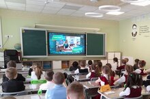По традиции каждый понедельник в гимназии после поднятия государственных флагов проходят классные часы "Разговоры о важном "