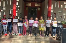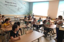 В лагере "Радуга" сегодня занятие в кружке "Английский театр" , увлекательное тематическое занятие "Сказки А.С.Пушкина". После обеда посещение кинотеатра , наблюдаем за приключениями кролика Питера.