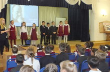 100 лет со дня рождения Бориса Заходера отмечают в этом году в России.Литературный праздник для учащихся 1-ых классов подготовили классныеколлективы под руководством Казачкиной И.Ф., Амировой Г.В., МахмутовойЛ.Д. Ребята прочитали со сцены любимые стихи Б.Заходера, познакомились сбиографией великого детского писателя и переводчика, его творческимзаветом для детей. -
