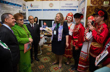 1.С 5 по 8 октября в столице Татарстана состоялся V Конгресс Российского общества преподавателей русского языка и литературы, на котором ведущие филологи и педагоги страны обсуждали языковые и культурные процессы в современной России.Мероприятие проходило при поддержке Правительства Республики Татарстан и фонда «Русский мир». На торжественной церемонии открытия мероприятия присутствовали Президент Татарстана Рустам Минниханов, президент Санкт-Петербургского государственного университета, президент РОПРЯЛ Людмила Вербицкая.В день открытия Конгресса были открыты павильоны образовательных учреждений, в которых был представлен опыт работы педагогических коллективов в данном направлении.Среди них был павильон гимназии №93,который вызвал интерес у организаторов и почетных гостей мероприятия.Активной учатницей Конгресса стала Александровская Ирина Алексеевна,директор гимназии.