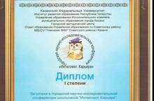 8.02.2013 на базе МБОУ «Гимназия № 90» Советского района г. Казани прошла V Городская научно-исследовательская конференция школьников «Интеллект. Карьера», в которой учащиеся нашей школы приняли активное участие.