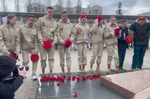Все участники мероприятия почтили минутой молчания солдат, не вернувшихся с войны, и возложили цветы к Вечному огню.
