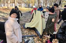 Сегодня в кадетском классе урок на свежем воздухе. Ребята учатся собирать и разбирать палатку.