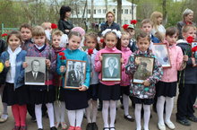 В строю «Бессмертного полка» рядом с учениками, родителями, учителями школы встали 127 героев Великой Отечественной войны. На линейке ребята держали портреты своих прабабушек, прадедушек-участников войны, тружеников тыла, блокадников Ленинграда. В течение года семьи учащихся школы искали материалы, наградные листы, архивные справки, фотографии. Проводили встречи, записывали воспоминания родственников. И вот, накануне Великого Праздника, стройными рядами встали солдаты Великой Победы!