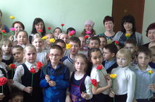 Акцию, которую начали ученики 2б класса с родителями, подхватили все ученики и родители начальных классов. Уже сделано не 70 гвоздик, роз и маков, а значительно больше. Группа учащихся и родителей 2б класса уже преподнесли цветы труженикам тыла на вручении юбилейных медалей и подарков. Теперь цветы готовят для всех, кто придёт на празднование Дня Победы в посёлке Дербышки 8 мая 2015 года.