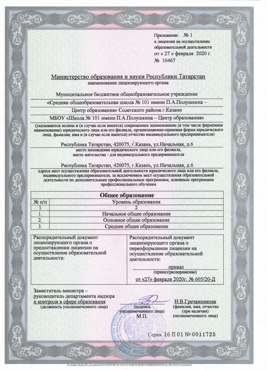Муниципальное бюджетное общеобразовательное учреждение «Средняя общеобразовательная школа №101 имени П.А. Полушкина - Центр образования» Советского района г. Казани