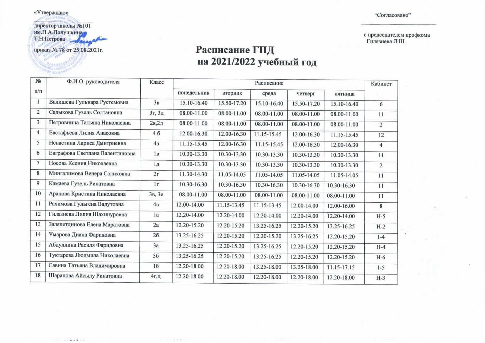 Расписание ГПД