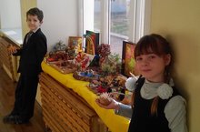В рамках школьного праздника "Золотая осень" учащиеся начальных классов открыли выставку совместного творчества взрослых и детей "Дары осени".