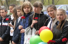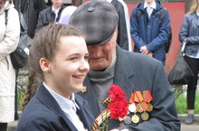 Учащиеся дарили ветеранам цветы.