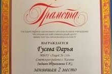 На Республиканском конкурсе декоративно-прикладного творчества "Чудеса из ларца" Гусева Д., ученица 2 класса заняла второе место. Руководитель - Ибрагимова Г.Р., учитель начальных классов. Поздравляем!