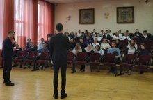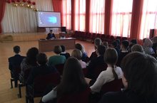Сегодня в нашем зале сотрудники департамента провели для наших старшеклассников интересную встречу с диетологом, который рассказал учащимся о правильном и здоровом питании.
